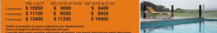 2 personas $Ar 7.300 - 4 personas $Ar 7.800