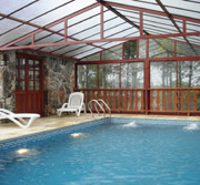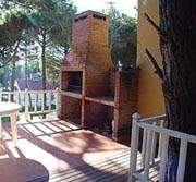 Las cabañas de 8 personas (120 mts.2) tienen dos dormitorios independientes, uno con cama matrimonial somier, otro con tres camas individuales, mas un tercer dormitorio o playroom con sofa cama single. Cuenta además la cabaña, con un sofa cama para dos personas, en el estar. Dos baños. Cocina completa, con microonda y heladera con freezer. Tiene dos televisores, ambos con cable y dvd. Además poseen pool o billar gol en la cabaña y deck con parrilla individual. También existen cabañas de 8 personas con dos camas matrimoniales.