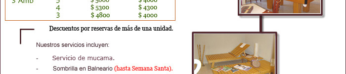 | Semana Santa 2010 - Los precios son por cabaña, por 3 noches y una noche adicional sin cargo. Las tarifas pueden sufrir modificaciones. |